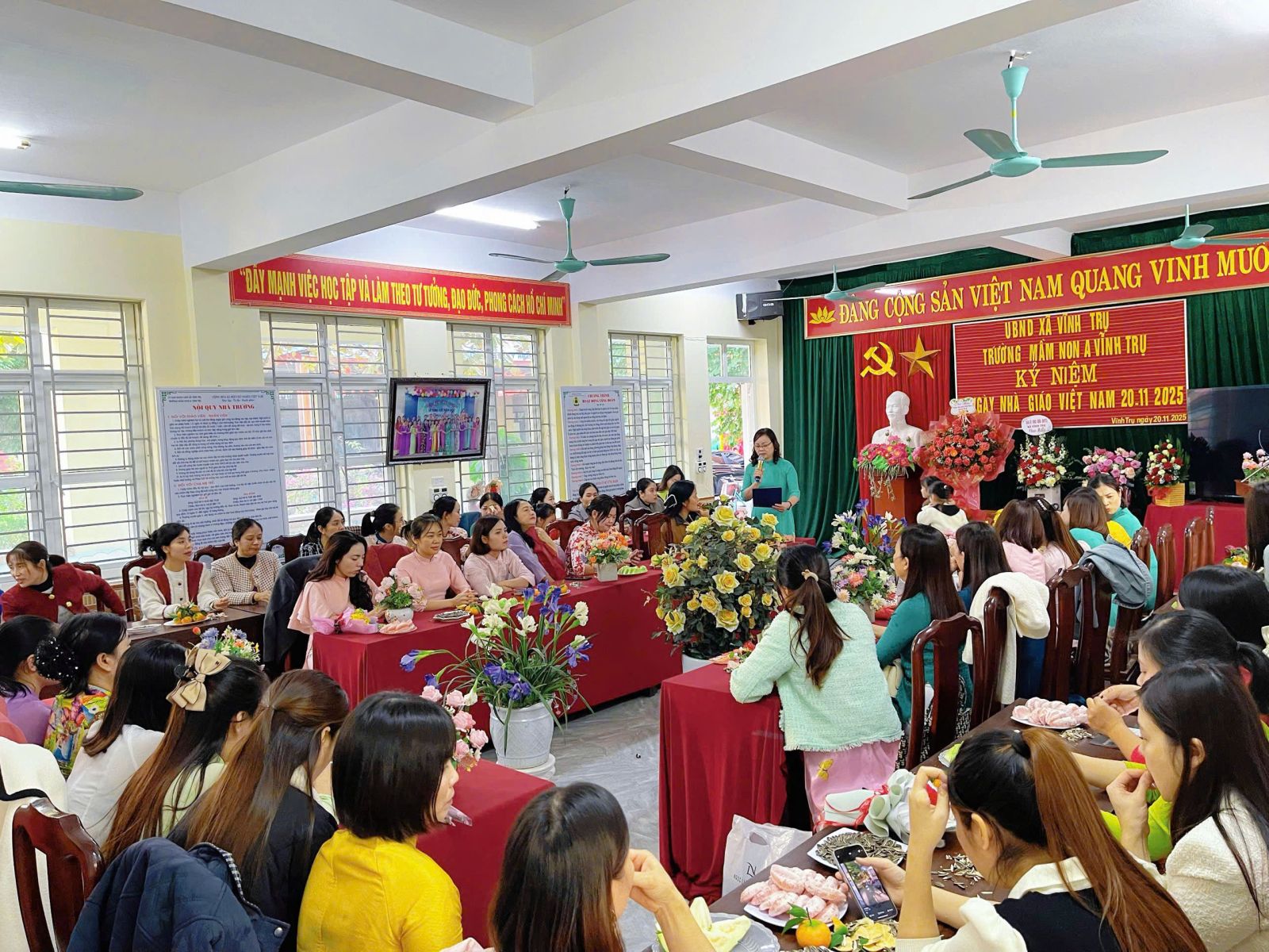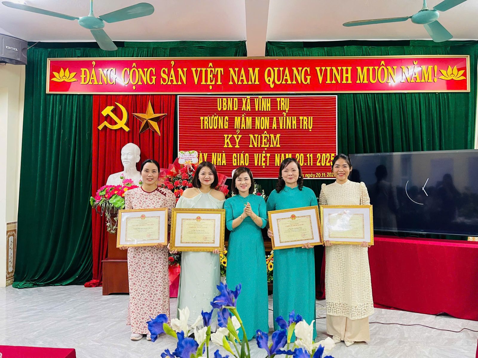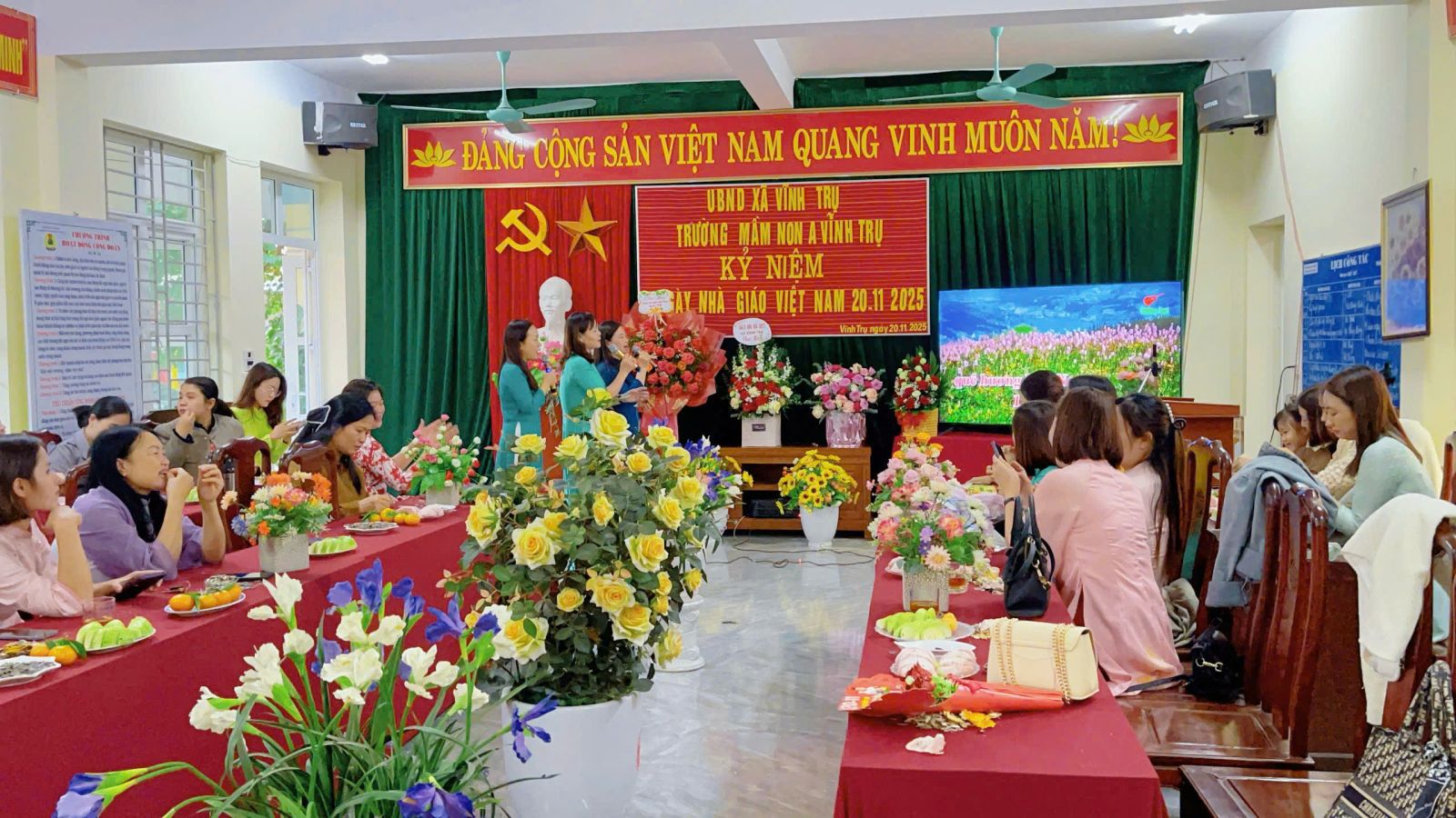 Hòa chung không khí hân hoan cả nước hướng về ngày lễ tôn vinh những người “ươm mầm tri thức” cho tương lai, Trường Mầm non A Vĩnh Trụ xin gửi lời chúc mừng nồng nhiệt tới toàn thể quý thầy cô giáo – những người đã, đang và sẽ âm thầm cống hiến, dìu dắt từng bước chân nhỏ bé của các con trên con đường khám phá tri thức và nuôi dưỡng nhân cách.
